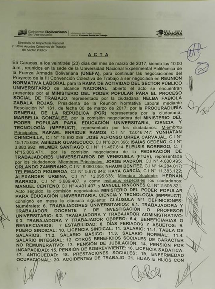 A continuación, podrá descargar el Acta del día 23 de Marzo de 2017, correspondiente a la discusión de la III Convención Única del Sector Universitario Acta 23 de Marzo 2017.pdf (736,3 kB)