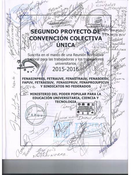 1.- El miércoles 15 de abril de 2015 fue presentado ante el MINPPTRASS la propuesta de la Segunda Convención Colectiva del Sector Universitario.